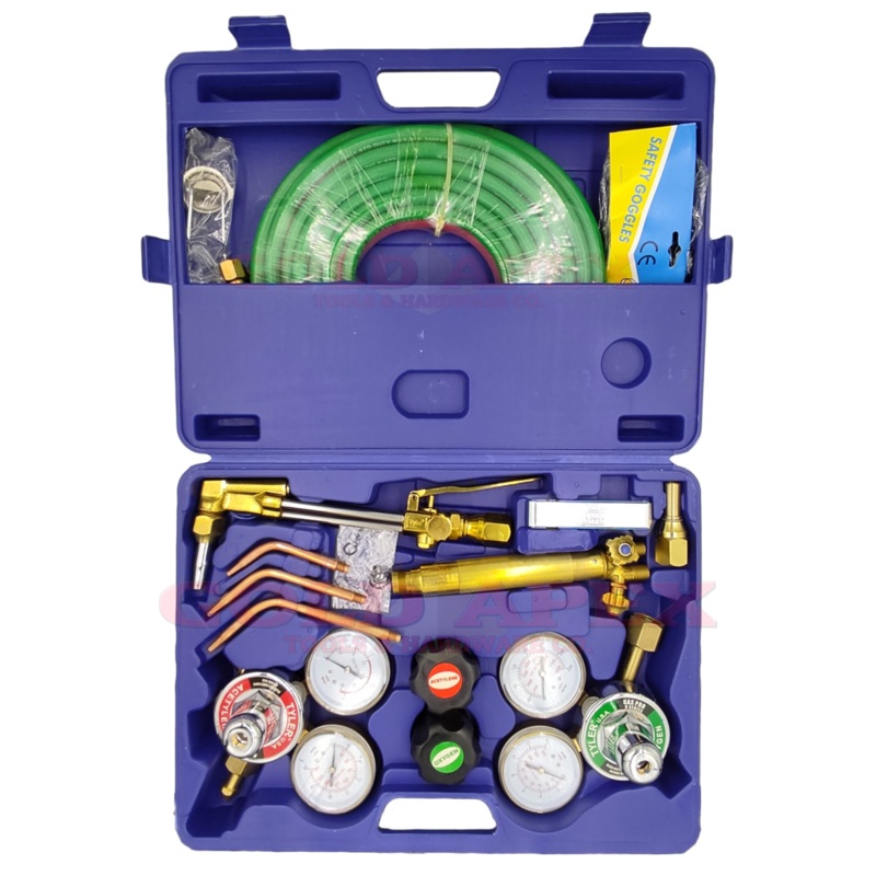 Harris TypeApplications:Gas Welding, Cutting, Brazing & Heating TorchesInclusions:Torch HandleCutting AttachmentOxygen RegulatorAcetylene RegulatorWelding Nozzles (No.3 No.5 No.7)MixerCutting NozzleTwin Hose: 15ft x 1/4" C/W FittingTip CleanerGogglesSpark
