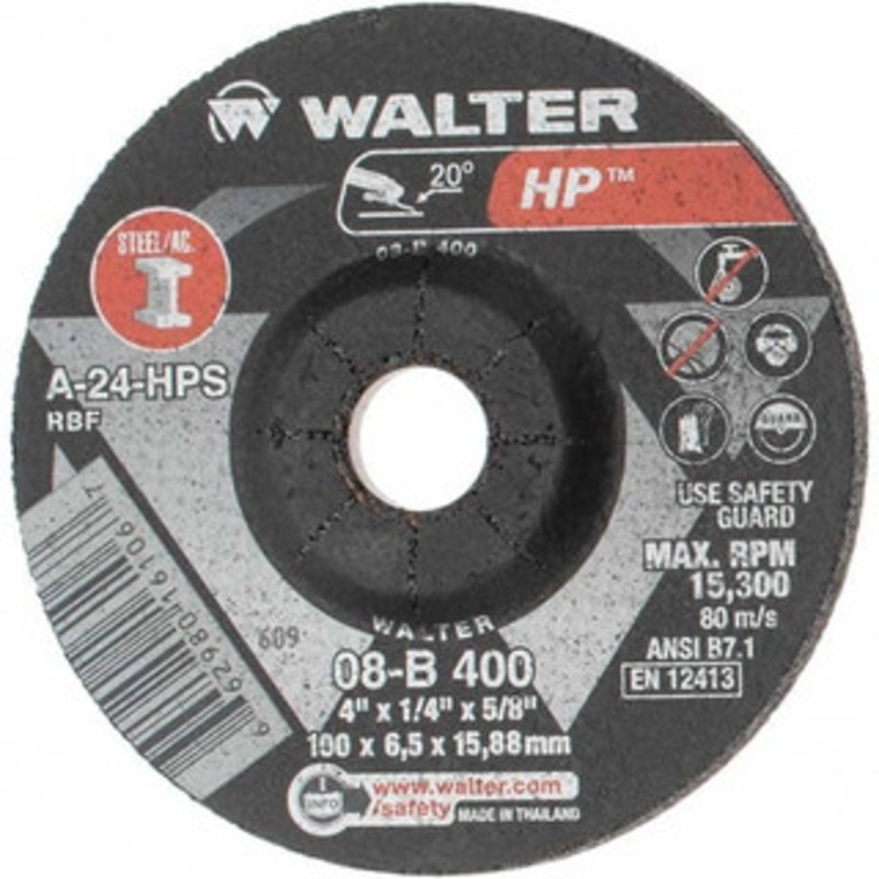 Value Collection 24 Grit, 4" Wheel Diam, 1/4" Wheel Thickness, 5/8" Arbor Hole, Type 27 Depressed Center Wheel Aluminum Oxide, Resinoid Bond, 15,000 Max RPMManufacturer Part #: BD-W08B400S/N: 43580471UNSPSC: 23131503(Minimum Order Quantity=1, Package Quant