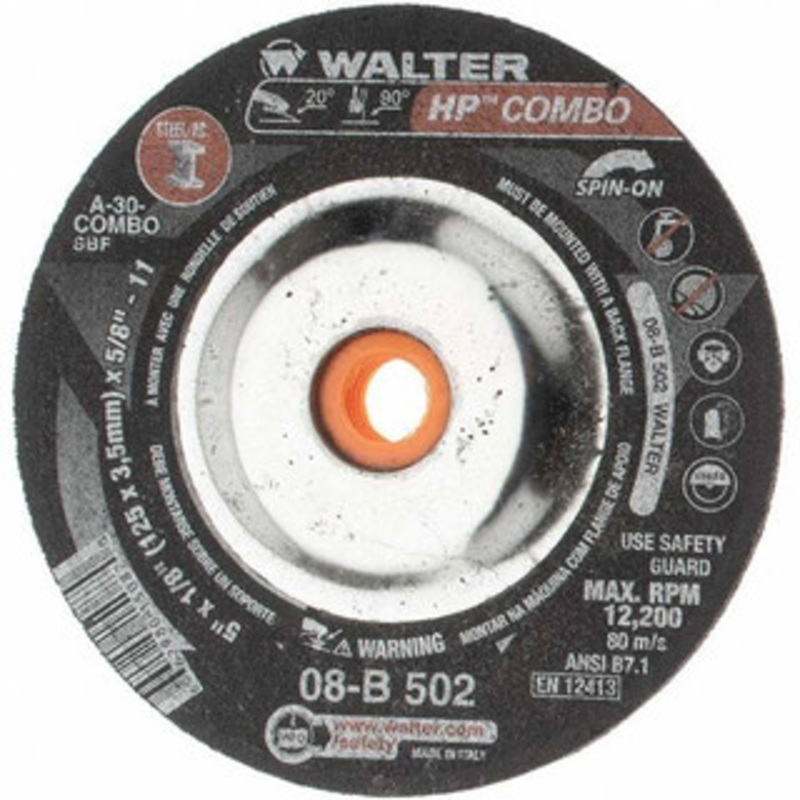 Value Collection 30 Grit, 5" Wheel Diam, 1/8" Wheel Thickness, Type 27 Depressed Center Wheel Aluminum Oxide, Resinoid Bond, 12,200 Max RPMManufacturer Part #: BD-W08B502S/N: 43573054UNSPSC: 23131503(Minimum Order Quantity=1, Package Quantity=25)Specificat