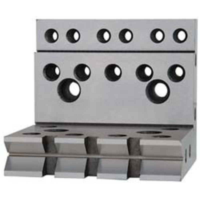Versatility High Precision Angle Plate - 30-131-7 Made in U.S.A. Steel angle plates, hardened to 58-62 Rc. All sides precision ground flat, parallel and square within 0.0002" 1" x 1/4" deep step in 4" x 4" x 4-1/2" Angle Plate plus Vee to hold cylindrical
