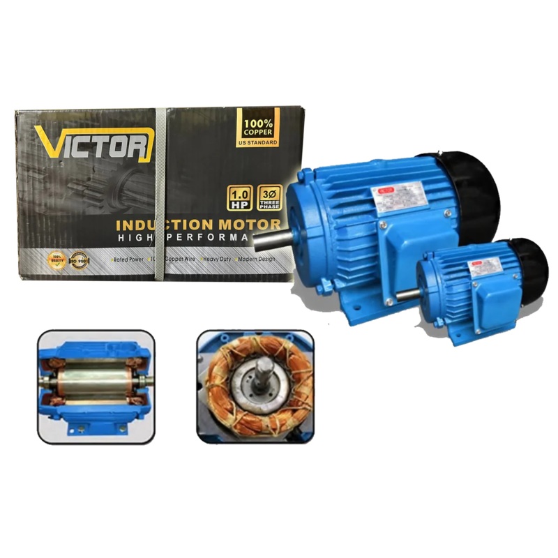Victor Electric Induction Motor (Copper) Single PhasePowerPrice1/4 HP3,682.001/2 HP4,106.003/4 HP4,814.001 HP4,475.001-1/2 HP5,041.002 HP7,151.003 HP9,133.005 HP15,576.007.5 HP19,824.0010 HP24,072.00 Three PhasePowerPrice1/2 HP3,550.003/4 HP4,300.001 HP4,6