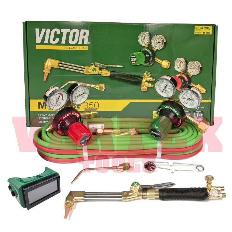 Original VictorVictor TypeMedalist 350Specifications:G350Heavy Duty Oxygen Regulator with CGA 540 ConnectionG350Heavy DutyAcetyleneRegulator with CGA 300 ConnectionWH411CWelding Handle with Built-in Check ValvesCA411-1 Cutting Attachment with 90 Head Angle