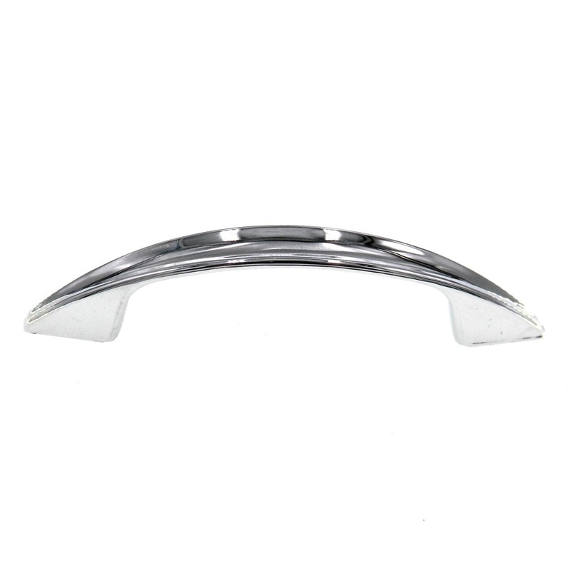 Vintage Polished Chrome cabinet arch pull handle with 3" center screw spacing, model 290-26 from National Lock Company's Galaxie collection. New old stock in good condition.National Lock Galaxie arch pull V290-26Polished Chrome finish, Die Cast materialsAd