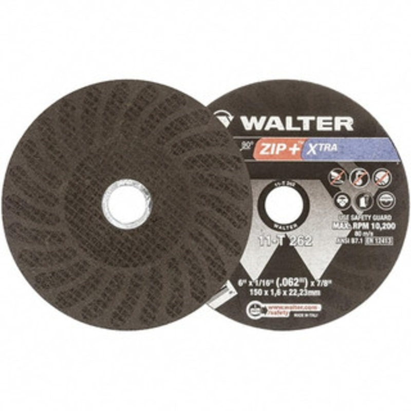 Walter Surface Technologies 6 x 1/16, 7/8" Hole 46 Grit Aluminum Oxide Cutoff Wheel Reinforced, 10,200 Max RPM, Use with Angle GrindersManufacturer Part #: 11T262S/N: 61379632UNSPSC: 23131503UPC: 662980637289(Minimum Order Quantity=25, Package Quantity=1)(