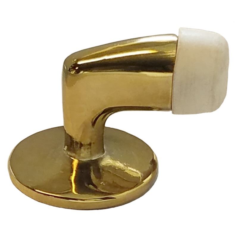 A floor-mounted doorstop is usually more convenient if the adjacent wall is weak or hanging racks are on the back of the door. Doorstops help prevent damage to the wall by stopping the door before the door handle hits the wall.Polished Brass Finish; 1 1/4"
