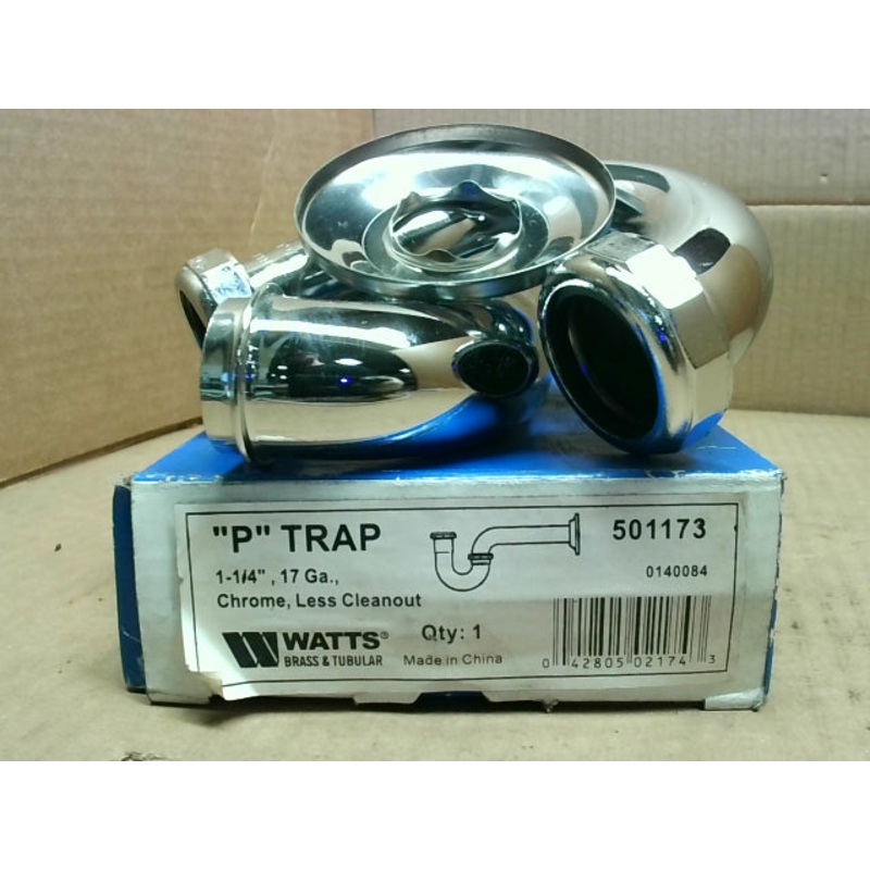 Watts 501173 3pc Brass 1-1/4Inch 17 Gague Chrome P Trap Less Cleanout