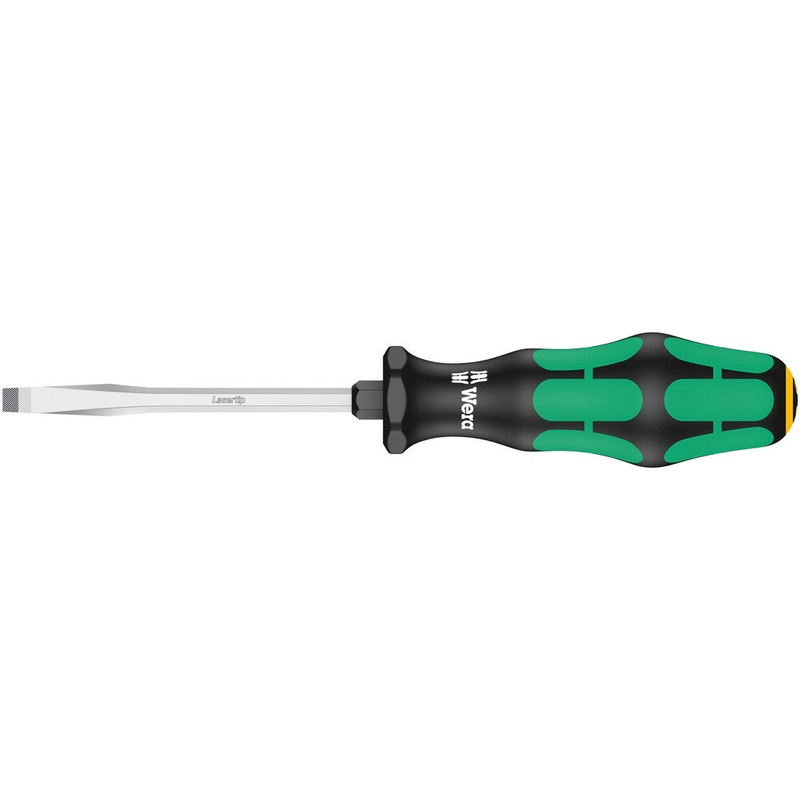 Application:Slotted screwsBlade:Hexagonal with bolster from 0.8 x 4.5Design:Chrome-plated, LasertipHandle:Kraftform with non-roll feature, multi-component. Take it easy tool finder: colour coding according to profile (yellow = slotted) and size stamp.Techn