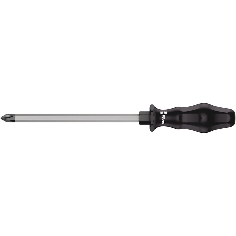 Application:Phillips screwsBlade:Hexagonal throughout with impact cap, hexagonal bolster for sizes 1 - 4Design:Chrome-plated, Black PointHandle:Kraftform with non-roll feature, multi-component, size 4/200: Kraftform with non-roll feature, single-componentT
