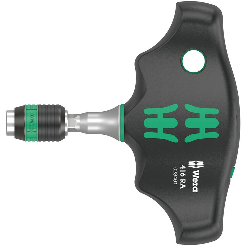 Wera 05023461001 416 RA T-handle bitholding screwdriver with ratchet function and Rapidaptor quick-release chuck, 1/4 x 45 mm