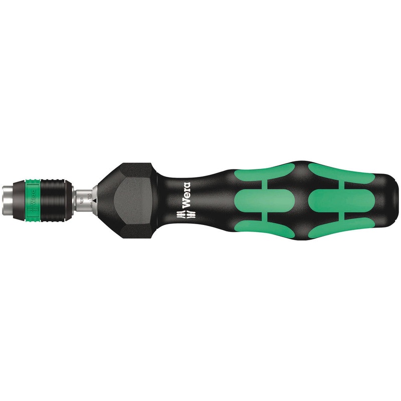 Application: Suitable for 1/4" DIN ISO 1173-C 6.3 and E 6.3 hexagon insert bits and Wera Series 1 and 4Design: Rapidaptor rapid-in, rapid-out, rapid-spin, chuck-all and single-hand technologyAccuracy: 6 % (DIN EN ISO 6789). Numerical torque valuescale. Rel
