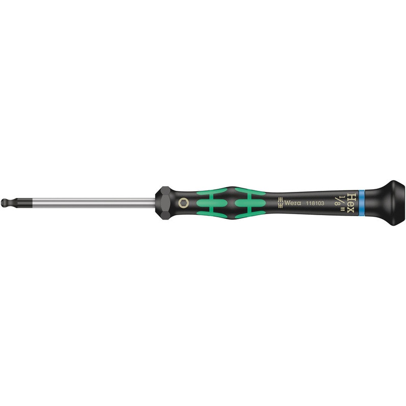 Wera 05118103001 2052 Ball end hexagon screwdriver for electronic applications, 1/8″ x 60 mm