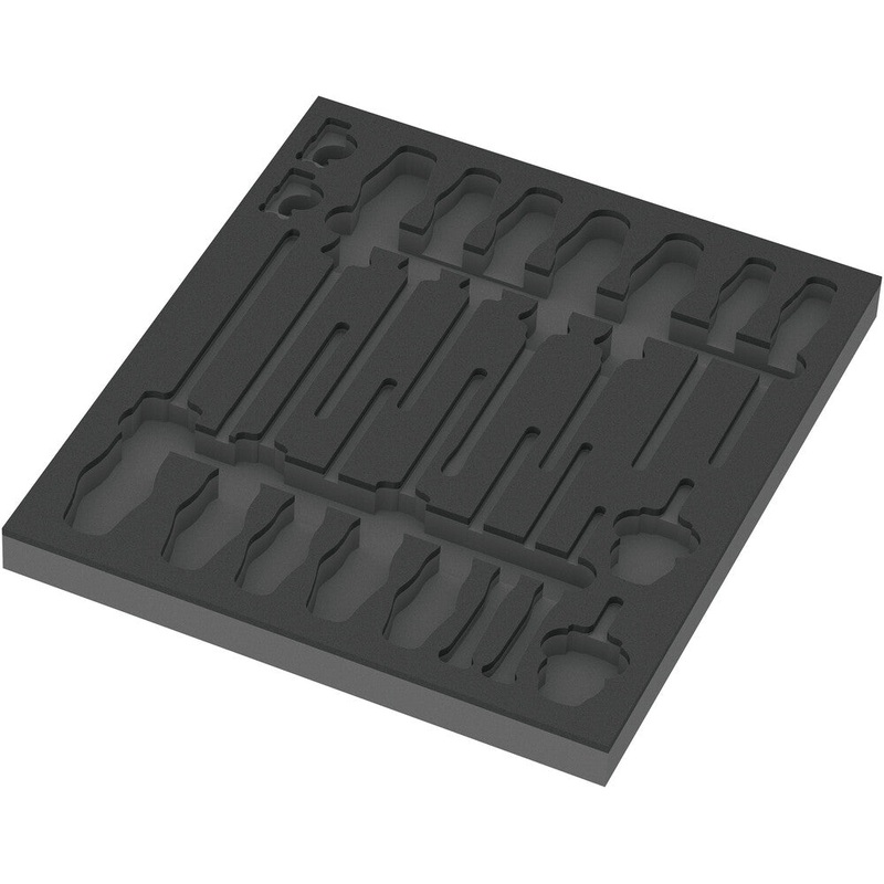 One durable foam insert, without tools; two-coloured for quick identification of missing parts; width x height x depth: 344 x 30 x 392 mm; spare insert for Wera item 9710; suitable for the Tool Rebel roller cabinet.Technical Specifications:9810 Foam insert