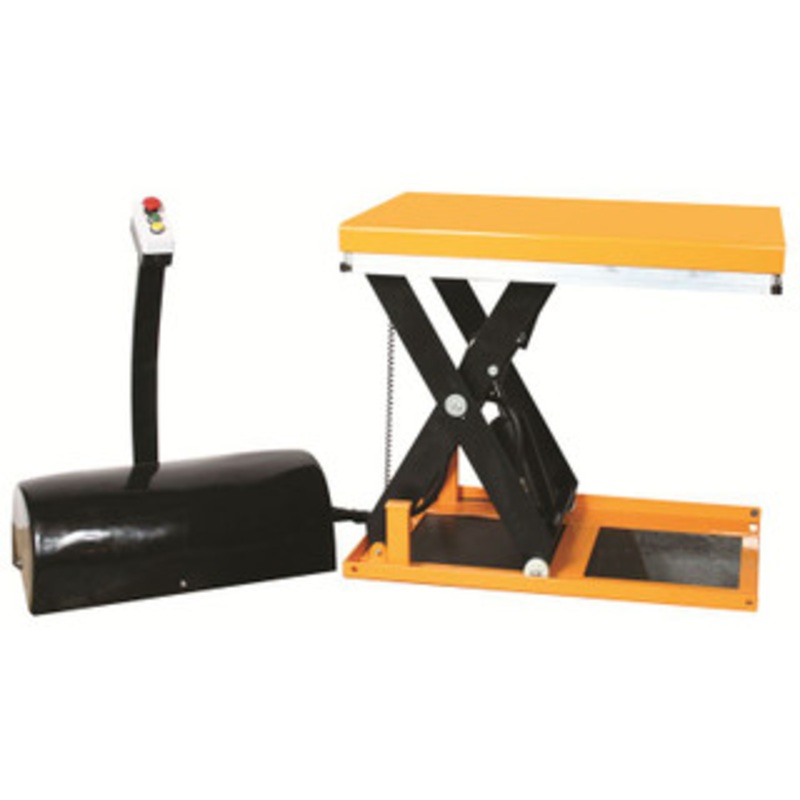 Wesco Mini Electric Scissor Lift Table, 2200 lb. Capacity - 270662 Heavy duty to handle tough loads. Small and light enough to move. Full perimeter safety bar stops table from lowering if it contacts an obstructions. 110 V 60 Hz. Push button station. Speci