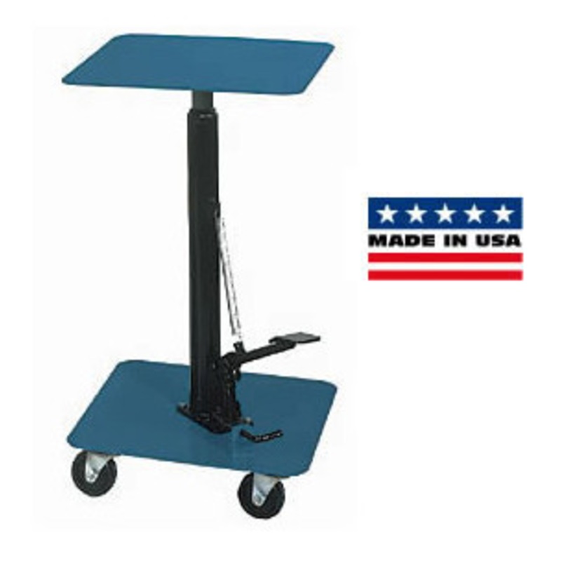 Wesco Standard Foot Pump, 18" x 18" - 260060 LT-02-1616 has four 3" polyolefin swivel casters LT-02-1616 ships via UPS knocked down LT-05 and LT-10 models feature 2 rigid and 2 4" phenolic resin roller bearing casters 7 gauge steel top and base Floor locks