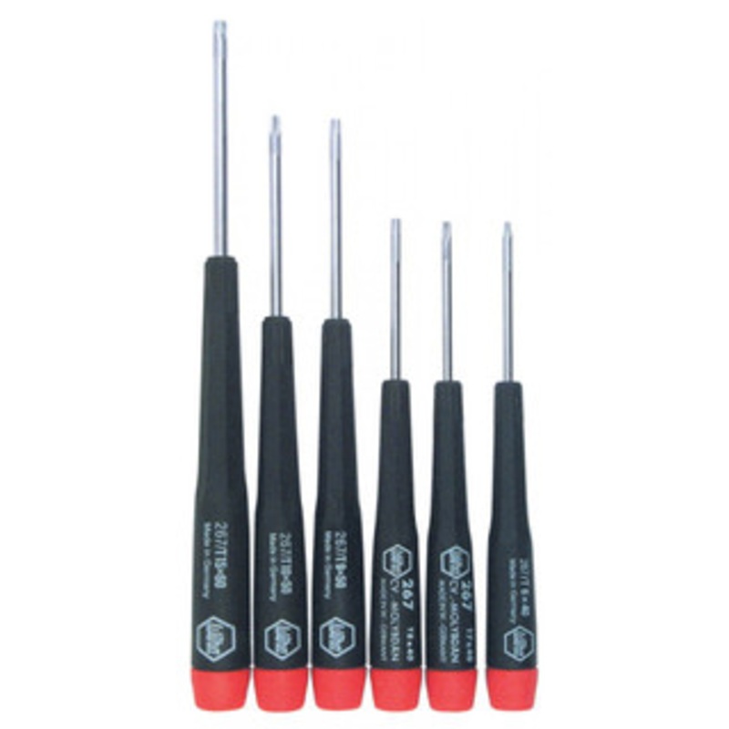 Wiha Precision Torx Screwdriver 6 Piece Set T6-T1526790 Precision Torx Screwdriver 6 Piece SetIncludes Torx Sizes: T6, T7, T8, T9, T10, T15Features: Wiha special chrome-vanadium-molybdenum tool steel Through hardened for best wear resistance Corrosion prot