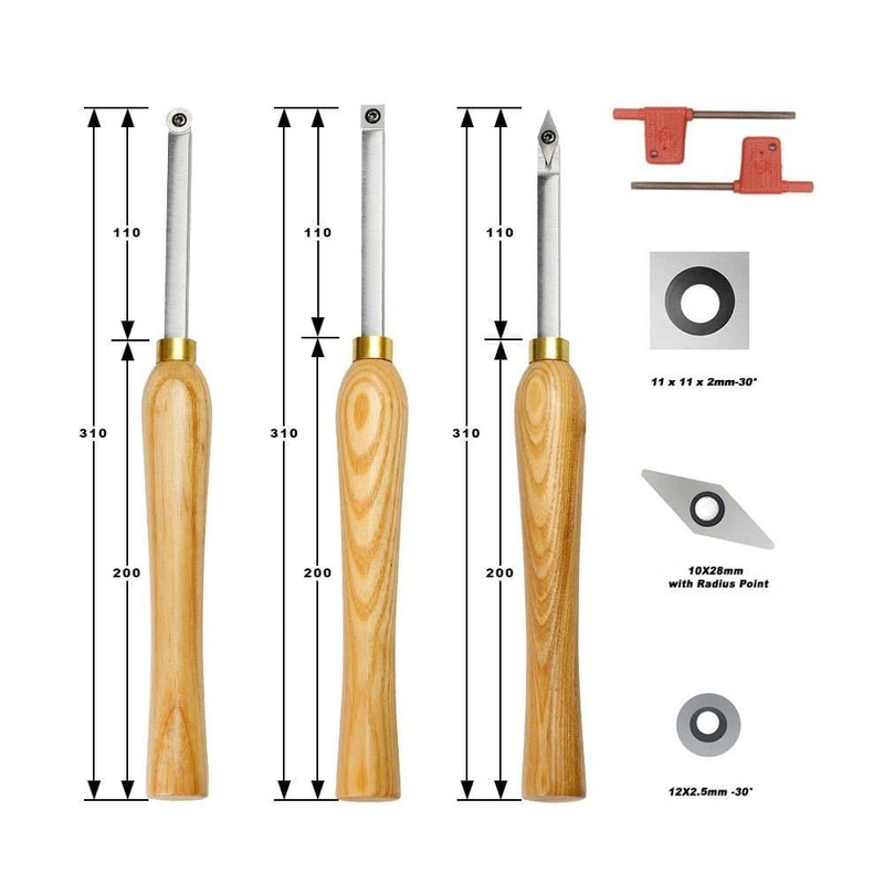 Woodturning Mini Size Carbide Lathe Tool Set of 3 3 lathe tools & 3 carbide tips